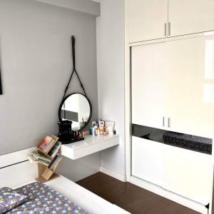 Có để lại một ít nội thất, căn hộ tầng 12 thoáng mát.